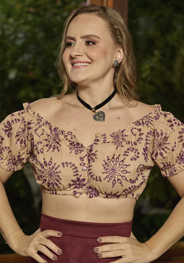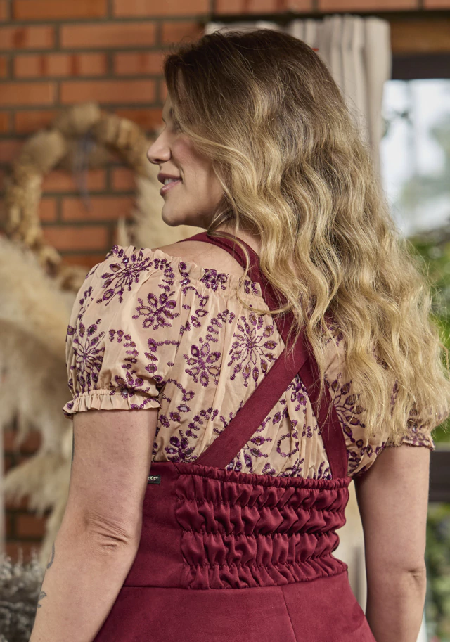 A Ciganinha Lotus se faz perfeita e meiga, na combinação entre o tecido delicado e o detalhe do peitilho com botões!