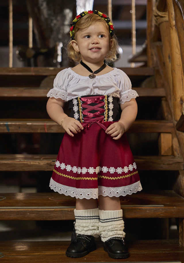 O Vestido Jasmim é abundante em cores e tradição, com sua saia rodada e blusinha branca encanta todos à sua volta!